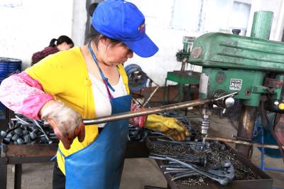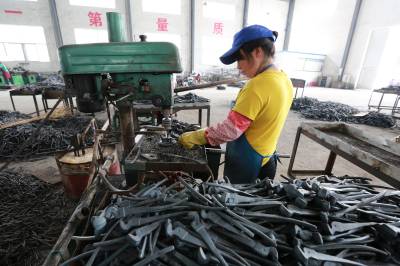 6月21日,在竹山县宝丰循环经济工业园,湖北宏志五金制造有限公司工人正在忙碌着生产五金工具。自2013年10月投产以来,该公司产销两旺,主要生产美式、欧式、德式、日式钢丝钳、尖嘴钳等40多种型号的五金工具,产品销往全球10余个国家,为当地解决就业岗位400余个,今年已实现产值4000万元。