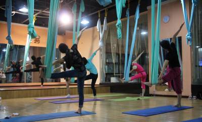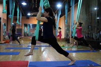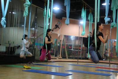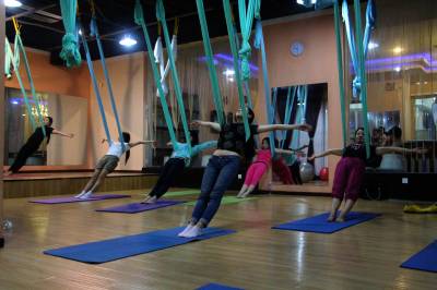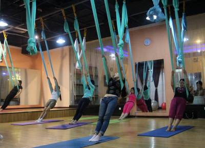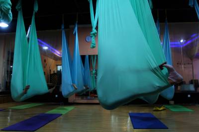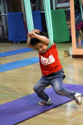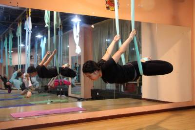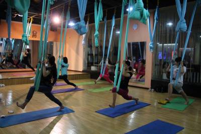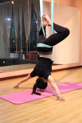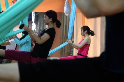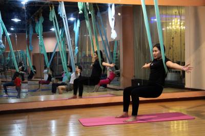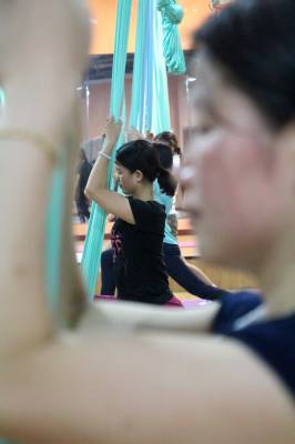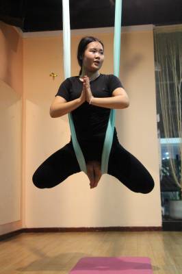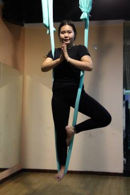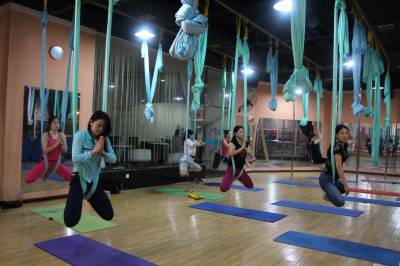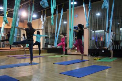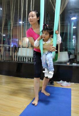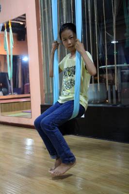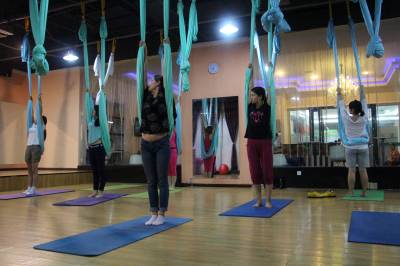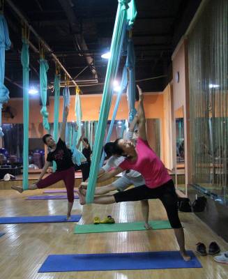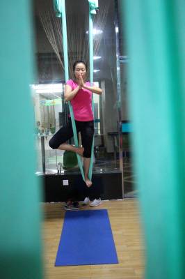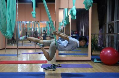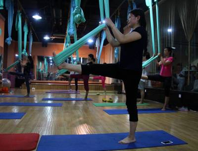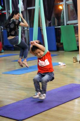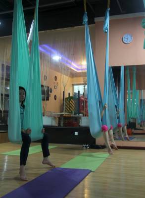 2015年6月21日,云梦县众多瑜伽爱好者在楚王城伽速度健身俱乐部练习一种全新的运动项目——“空中瑜伽”,尽情享受运动的快乐,迎接首个国际瑜伽日的到来。就连少年儿童也加入其中,体验一下空中瑜伽的乐趣。空中瑜伽,是将红色、黄色、蓝色、绿色或者白色等彩色绸缎的吊床悬在空中,练习者借助吊床悬在空中进行多种姿势的运动,和鸟儿或超人的姿势类似,给人一种悬浮,同时很放松的感觉,新鲜感十足。空中瑜伽,成为小城云梦运动健身的新宠儿。今年6月21日是第一个国际瑜伽日。当日,云梦数个健身俱乐部瑜伽运动格外受宠。2014年12月11日,联大宣布6月21日为国际瑜伽日。联合国秘书长潘基文表示,国际瑜伽日将让瑜伽更受重视,并说到:“瑜伽有助于抵御非传染性疾病,以包容的方式让不同社会群体联合起来,彼此尊重。这是一项有助于促进和平发展的运动,甚至可以帮助人们在紧张状态下从压力中解脱出来。”本报视界网 陈保忠 摄