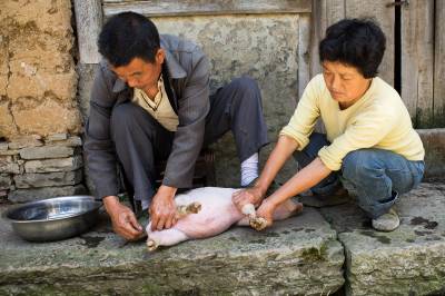 巴东县野三关镇招凤台村8组的张继承师傅是活跃在大山深处的劁猪佬之一。他今年62岁,自13岁开始劁猪骟羊,至今已从业50年,阉割成功率为100%。那天他在乡下劁猪时,还给一户农家骟了一只公羊,对羊子实施阉割,除了添膘增肥外,还可以有效地减轻羊肉的羶味。