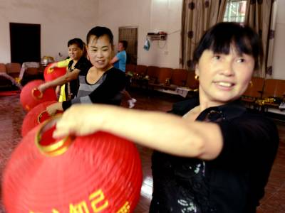 6月22日,来凤县革勒车镇二龙社区的大嫂们在抓紧排练庆七一文艺晚会节目。近年来,革勒车镇抓住国家龙凤示范区建设和黔张常铁路开工的机遇,围绕“三农”做文章,产业结构得到优化、镇域经济竞争力得到提高。在致力于发展经济的同时,结合每年庆七.一活动,积极打造乡镇公共文化活动新高地。该镇自2004年以来,已连续11年举办以庆七.一为主题的公共文化活动,活动内容以文艺演出、篮球运动会、公益电影放映、建设成果图片展为主。活动不仅活跃了本地群众文化生活,而且吸引了周边地区的演出群体、资深演员加盟,形成了以“庆七.一、唱红歌”为主题的独特文化品牌。