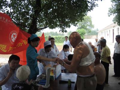 值此“七一”党的生日来临之际,6月24日,云梦县人民医院临床党支部专家来到胡金店镇卫生院病房,指导帮助卫生院医生看病;随后又到镇福利院,为老人量血压、检查身体,并送去价值3000多元药品,以实际行动庆祝党的生日。图为专家正在为福利院老人检查身体。 通讯员 黄永强 摄 通联 云梦县胡金店镇政府政府 黄永强 电话 15971282503
