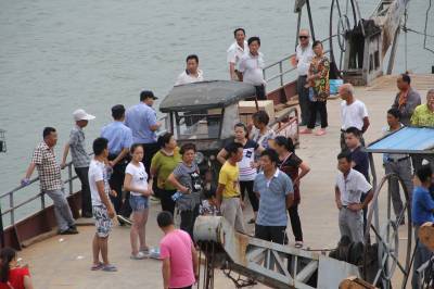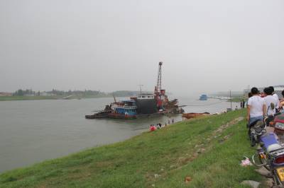 记者在现场看到江面上一艘小型海事船在江面搜寻,三只木船在失事区域拉网打捞。记者随后乘另外的机渡船过江至对岸,肇事汽渡船停靠在岸边,李某所开的三轮车还在船上,失踪者家属介绍,李某1970年生,系马鞍乡老虎咀村人,开三轮摩的运输建材和磁砖为生。