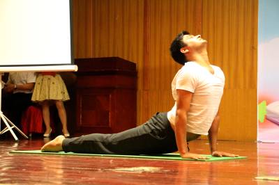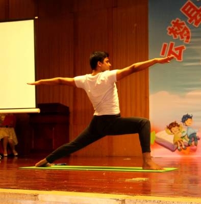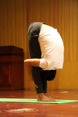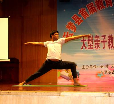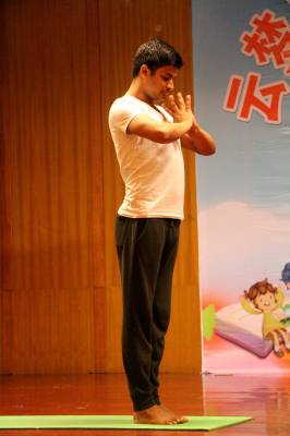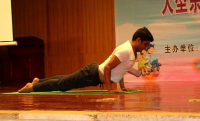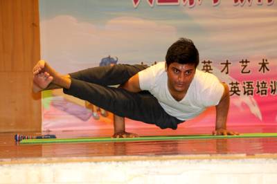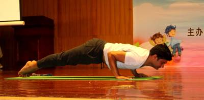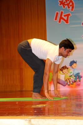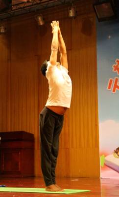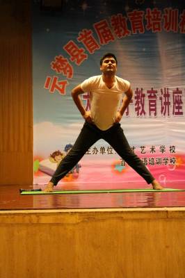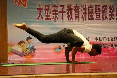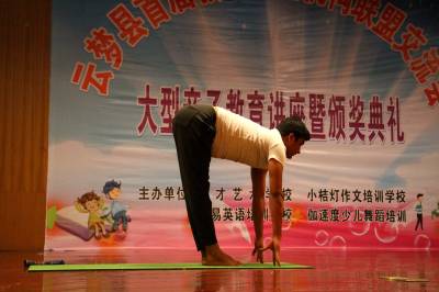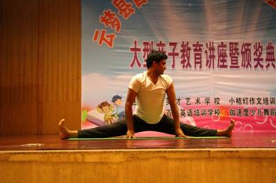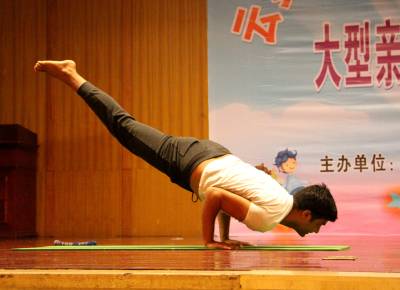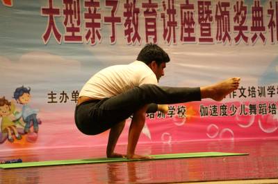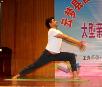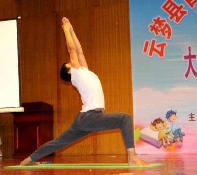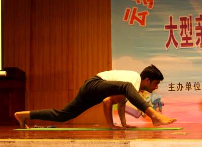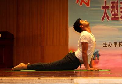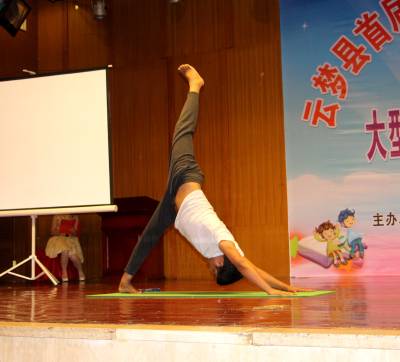 2015年6月26日,云梦县一多功能厅座无虚席,由印度瑜伽专业教练示范表演的高难度瑜伽动作倾倒在场观众。 瑜伽起源于印度,距今有五千多年的历史,被人们称为“世界的瑰宝”。 “国际瑜伽日”刚刚过去,这块“瑰宝”如今来到小城云梦,已经成为市民运动锻炼的新宠,为云梦市民运动锻炼增添了一种全新的选择方式。当日,由伽速度健身俱乐部等组织的活动,邀请印度专业瑜伽大师进行现场示范表演,印度瑜伽专业教练高难度瑜伽动作惊艳四座。 本报视界网 陈保忠 摄