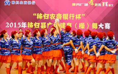 当日,秭归县举行2015年全县广场健身舞(操)大赛,来自县直、乡镇的18支代表队参加角逐,最终县农商银行代表队以其精湛的舞技和独特的造型摘得桂冠。此次活动为广场舞爱好者搭建了追求健康、提升素质、收获快乐的平台,充分展现了全民参与健身、乐于健身的良好风貌。