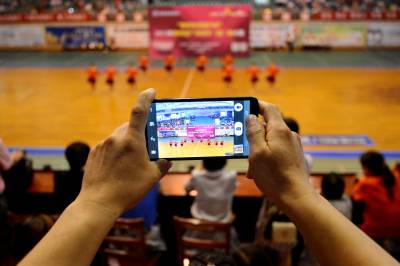 6月28日,选手正在参加广场健身舞(操)大赛。