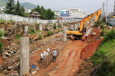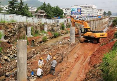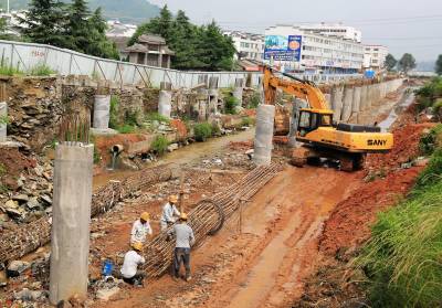 7月1日,竹山县宝丰一级公路宝丰镇店子街河段施工现场一片繁忙。据悉,宝丰一级公路起点位于麻家渡镇营盘河村,终点位于宝丰集镇高速互通处,路线全长约7.8公里,采用双向六车道一级公路标准设计,设计速度采用60公里/小时,路基宽度30米。宝丰一级公路建成后,将对地方经济社会大发展提速提质。