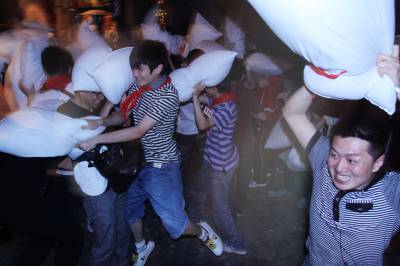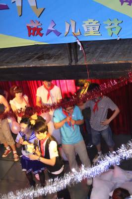 2010年5月29日晚,武汉,80特区在汉阳东方会馆举办成人儿童节,80后青年在主持人带领下展开了2个多小时的互动游戏。他(她)们佩戴上红领巾、少先队队长标志(三道杠),共同演唱童年耳熟能详的歌曲,重温少先队入队宣誓仪式,一起玩折纸飞机、开火车等童年游戏,共享童年玩具的快乐回忆,其高潮是大家在枕头大战中回归童年般无忧无虑的快乐时光。