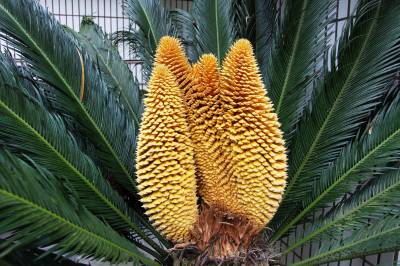在秭归县城搬迁茅坪之时,因铁树四季常青且生长速度较慢等原因,许多单位都把铁树当做很贵重、很贵气的绿化树种移栽到房前屋后,有的还以在客厅摆放一盆铁树为荣。在笔者所住的长宁小区宿舍楼前,当时也移栽了十棵较大的铁树。从2004年起,其中一半的铁树年年都开花。今年“双胞胎”的有三棵,其中一棵“双胞胎”竟然有四个头(如图),十分罕见,十分古怪!