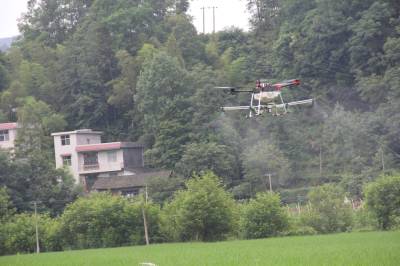 无人机载药量为20斤水兑1000ml农药,一架次实际作业时间约为5分钟,可防治5亩,每小时可完成50余亩农田农药喷洒作业,大大提高了作业效率,且无人机能将雾化均匀的药剂喷洒到禾苗基部,提升了防治效率。此外,无人机还具有降低劳动成本投入、减少环境污染、节约水资源等优点。