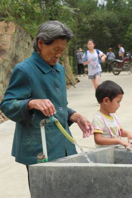 > 扶贫村老人用上自来水