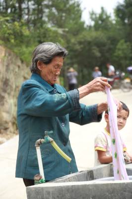 扶贫村老人用上自来水 7月2日,邹云英老人在家门口用自来水清洗衣物。据了解,竹溪县财政局进驻水坪镇向家汇村开展精准扶贫以来,拨忖27万资金解决群众饮水难。近期5组硬化乡村道路刚完工,该组就新埋了1800米自来水管道,家家户户用上了自来水。