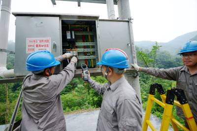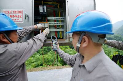 7月4日,在保康县马桥镇黄湾村,电力员工在测试供电台区的变压器用电负荷。 随着气温升高,用电负荷节节攀升。为确保电网在大负荷及恶劣天气情况下正常运行,国网保康县供电公司组织多只巡视队伍,对全县各地的输配电线路和供电台区开展隐患排查巡视,为夏季全县安全用电提供坚强保障。(视界网 陈泉霖 摄)