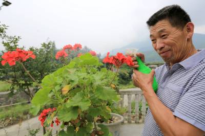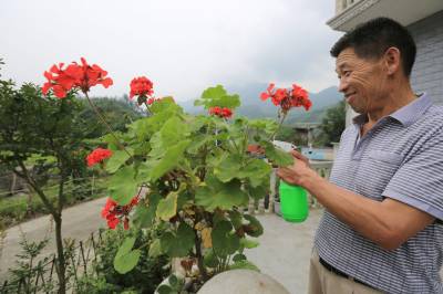 7月5日,竹山县大庙乡全胜村二组农民全守志正在自家庭院里浇花。近年来,该县结合“绿满竹山”和新农村建设,实施“八绿”(山绿、路绿、河绿、城绿、园绿、村绿、院绿、地绿)工程,着力打造绿色城镇、绿色村庄、绿色庭院、绿色通道、绿色库区、绿色园区、绿色景区、绿色屏障,好一派村容村貌处处新、“绿满竹山”处处景的新气象。