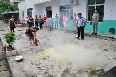 7月5日,巴东县金果坪乡村级安全生产“娘子军”正在演练灭火器的使用方法。