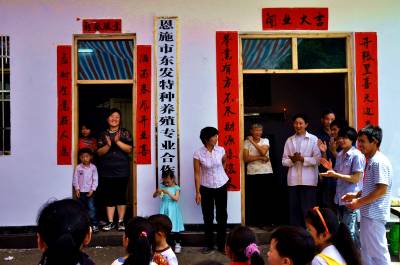 5月30日,恩施市红土乡乌鸦坝村江家湾组返乡农民工杨晓冬正在指导社员如何饲养竹鼠。这是该乡专业合作社组织社员培训的情景。据悉,近几年来,该乡出台一系列优惠政策,鼓励返乡农民工家门口创业,带动农民家门口就业,创办种植业、特养殖业、加工业等专业合作社(公司)21家,带领5000多户农民走上了合作经济路子,形成烟叶、蔬菜、魔芋、萄葡、竹鼠齐头并进的格局,为群众增收致富开拓了新路子。(视界网签约摄影师彭绍峰摄)红土乡政府13329820218