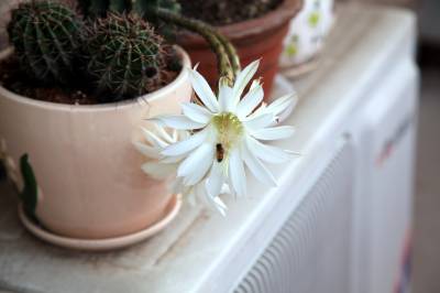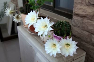 窗外仙人球开花