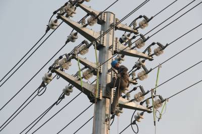 谷城供电备战夏峰 7月7日,国网谷城县供电公司线路建设检修工区员工正在经济开发区架设10千伏线路。针对今年迎峰度夏形势的总体预测,该公司早谋划、早行动,累计投入2200万元资金,对输配电线路、变电站、配电台区等薄弱环节,进行技术改造,为电网“强筋壮骨”,确保夏季电网安全稳定运行。 视界网马明刚摄