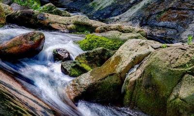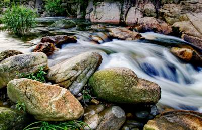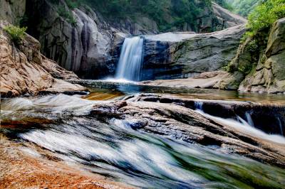 纵然走遍千山万壑,其实最美的就在我们的身边。大悟宣化杏冲村有九女潭,地处两省接壤,上游在河南新县苏河镇墨河村,起点为塘楼组,随山势弯曲流入杏冲。她如同一颗璀璨的明珠,镶嵌在大别山的崇山峻岭中,熠熠生辉,直耀人眼。山中还未开发,呈天然状,野趣十足。山俊水秀石怪,时而涓涓小溪,时而潺潺流水。水底石头明晰可见,石面青苔反射阳光点点跳动。正如陶渊明《桃花源记》的“缘溪行,忘路之远近。忽逢桃花林,夹岸数百步,中无杂树,芳草鲜美,落英缤纷,渔人甚异之。”