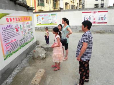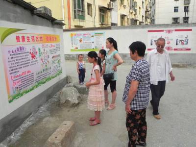 7月8日,小学生跟随家长在武阳巷学习卫生健康知识。十堰市郧阳区城关镇武阳岭居委会的武阳巷,这条百米长的小巷人流量大,过去巷道两边乱种乱堆,墙体乱贴乱挂、布满“牛皮癣”,武阳岭居委会积极推进“五城” 联创工作,如今对武阳巷进行彻底整治,粉刷了墙体,安装上“中国梦、我的梦”、“五和” 郧阳、卫生健康知识等公益广告牌,小巷成为“践行社会主义核心价值观”的宣传长廊,深受居民欢迎。