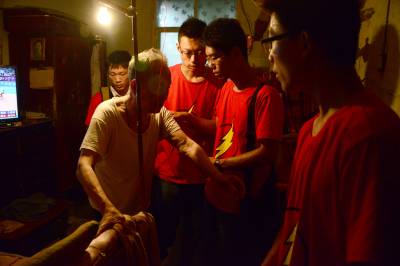 2015年7月7日,抗日战争爆发纪念日。湖北宜昌。三峡大学电气与新能源学院愉婷志愿者服务队的康亚堃等四名志愿者走访看望了家住城区工人新村7-2的抗战老兵屈克明。他们把向抗战老兵致敬作为暑期社会实践的重要课目。 抗战老兵屈克明,1927年生,曾隶属国民革命军第八军103师307团1营2连3班。参加过宜昌抗战和松山战役。枪林弹雨,九死一生。1950年参加人民解放军。1983年宜昌市酱品厂退休。