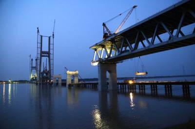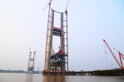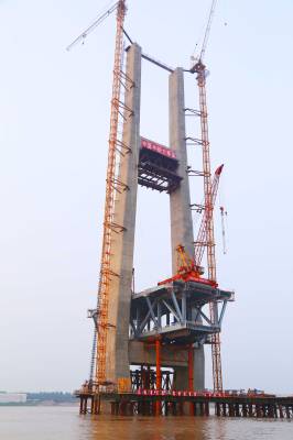 蒙华铁路公安长江大桥4号主塔墩两对斜拉索成功安装