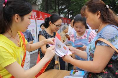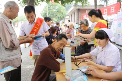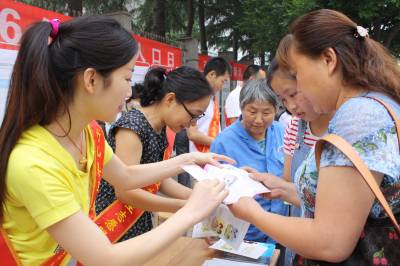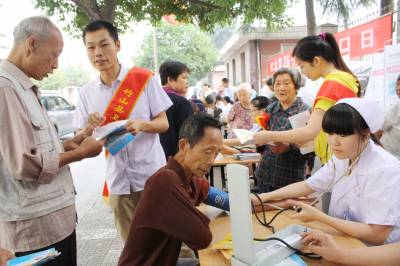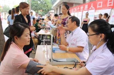7月9日,工作人员正在街头开展爱心义诊活动和发放宣传资料。在第26个世界人口日到来之际,竹山县卫计局把关注民生、服务群众作为加强医德医风建设,提高医疗服务质量的有力措施,组织县人民医院、中医院、疾控中心等6家医疗机构的医务人员专程送医送药到北大街及城西社区,开展健康检查等义诊活动。今年人口日的主题是“弘扬婚育新风,关爱弱势群体”,通过开展宣传和义诊活动,以推动全社会对留守老人和儿童的关注,唤起更多人来关爱照顾弱势群体。