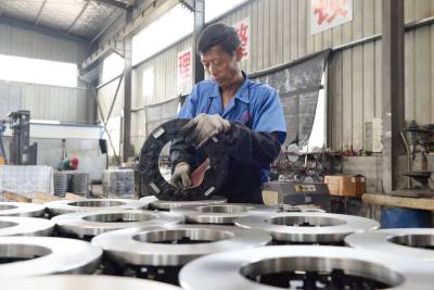 7月10日,湖北亚钢金属制造有限公司工人正在对汽车离合器铸件进行精加工。面对经济下行压力,湖北亚钢金属制造有限公司不断加强产品技术创新,产品通过ISO/TS16949质量认证,今年还与全球领先的汽车零部件供应商法国法雷奥集团开展战略合作,进入小批量生产阶段,2015年预计实现总产值比去年增长50%。 (视界网 黄爱东 黄德望) 作者通联:安陆市委宣传部 13886355004