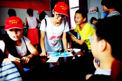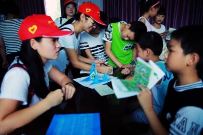 志愿服务传爱心 11日,大学生胡珊珊、康天乐等与留守儿童开展诚信知识答题、叠纸、交心等活动。当天,湖北第二师范学院10名师生来到巴东县官渡口镇中心小学开展“诚信驿站”志愿服务活动,将诚信驿站盈利为学校购买图书1000多册,把精神食粮送到山区贫困留守儿童手中。(视界网穆世祝摄)15335850858