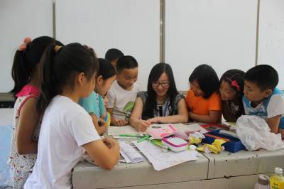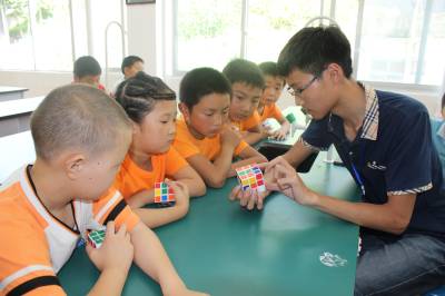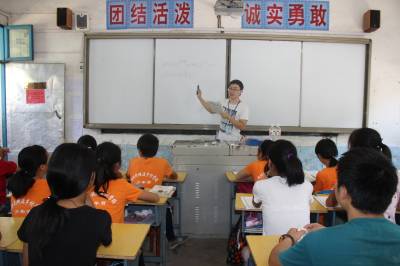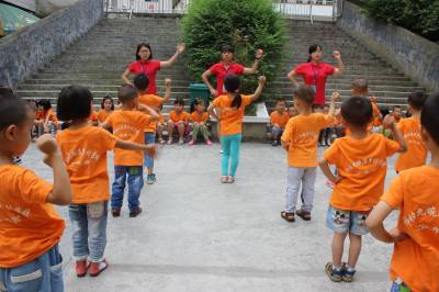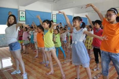 7月11日,华中科技大学公管学院大学生志愿者在九畹溪乡村学校少年宫夏令营指导学生跳集体舞。 据了解,秭归县九畹溪中小学是华中科技大学的德育实践基地,华科大公管学院今年选派了15名品学兼优的大学生组成志愿者团队到该校参加暑假少年宫夏令营活动,和600多名留守儿童一同吃住,辅导学生作业,指导学生开展书法、舞蹈、绘画、唱歌、篮球和口才培养等多方面的兴趣活动。 荆楚网通讯员 邹厚虎 摄