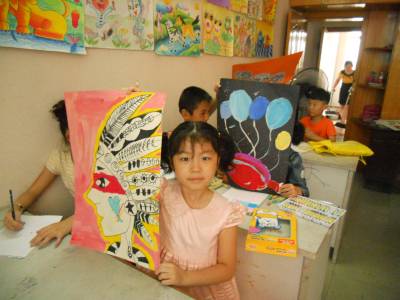7月11日,汉川市回龙镇“阳光家园”里坐满了前来练习绘画的留守儿童。他们创作的国画、水粉画、线描画等,一个个夸张的形象,一块块大胆鲜明的色彩,一件件带着奇思妙想的稚气造型,充分展现出孩子们敏锐的感受力、非凡的想像力和奇特的创造力,处处闪烁着童心的光彩。 签约摄影师:邹开建 摄 通联:汉川市卫计局 电话:13197382491 邮编:431600