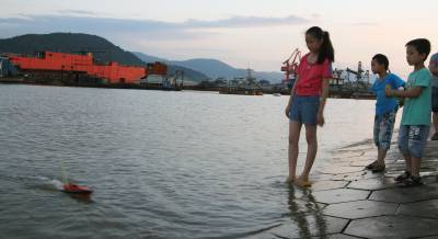 7月11日,一群孩子在家长的照看下,在长江武穴段玩遥控机动船,阵阵江风迎面吹来,好不惬意!时值夏天,武穴市市民选择在江边借水纳凉,是个不错的选择。视界网冯怡红摄