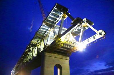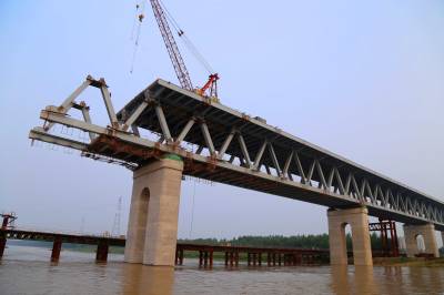 蒙华铁路公安长江大桥连续钢桁梁架设接近尾声