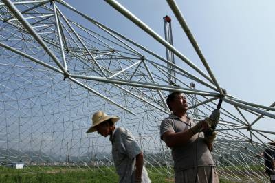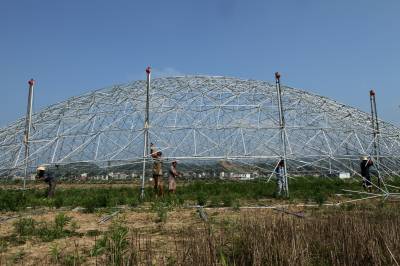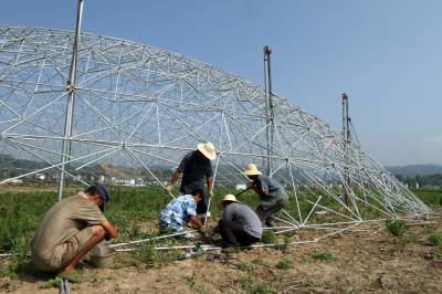 7月12日,房县正在建设军店镇何家村禾益农业观光园“鸟巢大棚温室”。该项目投资1.5亿元,兴建由钢架连结的“鸟巢大棚温室”,占地2000亩。“鸟巢大棚温室”禾益农业观光园以油用牡丹花种植、牡丹花油加工、农业旅游观光、果蔬釆摘等综合功能于一体。项目投入使用后,将対鄂西北地区农业产业结构调整和转型升级起到积极的示范引领作用。据悉,“鸟巢大棚温室”栽培的蔬菜、花卉,实施符合欧盟标准的全生态、无农药化管理,此外,游客在“鸟巢”内观赏蔬菜、花卉从育苗到种植的全过程,可以大大提升农业旅游观光的知名度。
