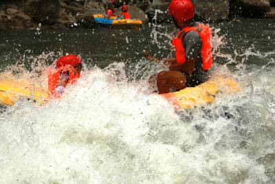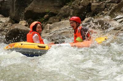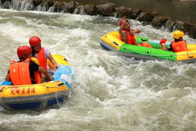 当日,三峡库区湖北省秭归县气温升至34℃,大批游客扎堆前往湖北省秭归县九畹溪漂流景区激情漂流,寻觅清凉,体验戏水乐趣,戏水漂流成为人们消暑纳凉的好去处。 本报视界网 王罡 摄