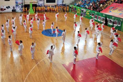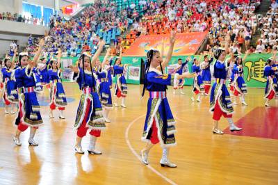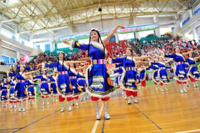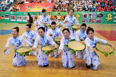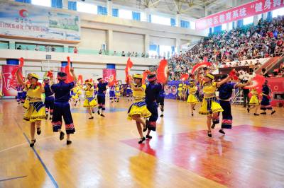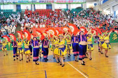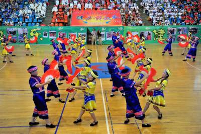 2015年7月13日,宜昌市夷陵区教育系统“园丁健身舞起来”舞蹈大赛来开帷幕,当地各中小学的老师们集中展示他们利用暑假时间创作编排的民族民间等舞蹈节目,将优秀的传统文化加以传承和保护,尽情展现了传统文化“热舞”校园的内涵和魅力。视界网 张国荣 摄