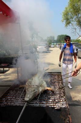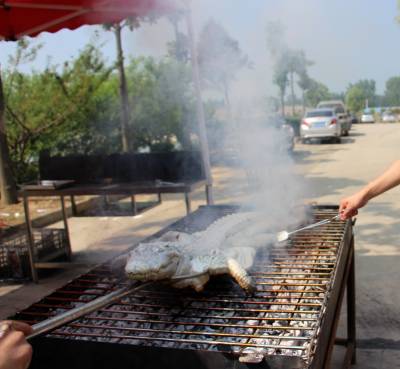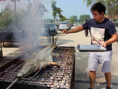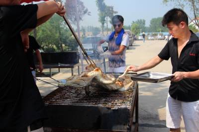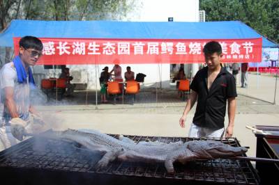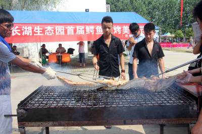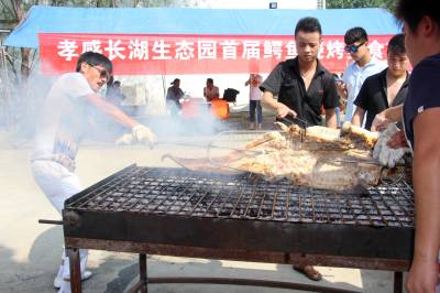 2015年7月12日,正当暑假期间,第二届摸鱼节暨首届鳄鱼烧烤美食节在孝感长湖生态园举行。当日,孝感长湖生态园举行的第二届摸鱼节暨首届鳄鱼烧烤美食节,吸引众多游人前来摸鱼,观看烧烤鳄鱼,品尝鳄鱼烧烤美味,为暑期的家长、学子们增添了无穷的乐趣。据介绍,举办方已经办理了相关手续,获准宰杀销售此类鳄鱼的许可。