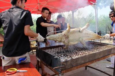 > 孝感举办摸鱼节、鳄鱼烧烤美食节