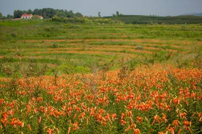 7月11日,张文秋故里,百合花飘香。京山县孙桥镇青树岭村美丽乡村百合花薰衣草庄园举行了盛大的开园庆典仪式。近千人驱车慕名前来赏花。 美丽乡村青树岭百合花熏衣草庄园,面积40万平方米,分为百合花区、熏衣草区、有机果蔬采摘区、深加工区、垂钓区、餐饮区。其中熏衣草种植面积为7万平方米,百合种植面积约22万平方米,是荆门市最大的食用百合生产基地。 (张文胜)