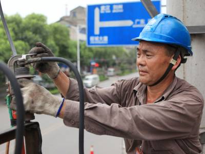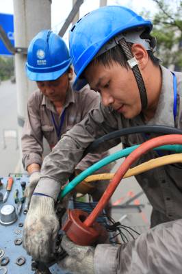 7月13日,宜都市供电公司员工在枝城镇8#公变上进行电力抢修。本周以来,宜都迎来首轮高温天气,电网负荷持续攀升,供电设施经受着严峻考验,宜都市供电公司加强应急值班,备齐备足抢修物资、车辆,一旦设备发生故障停电迅速赶赴现场抢修及时恢复供电,保障居民用电需求。屈琪骥 13886699776