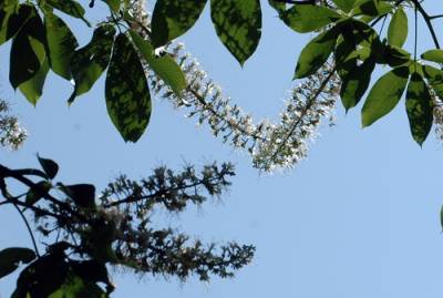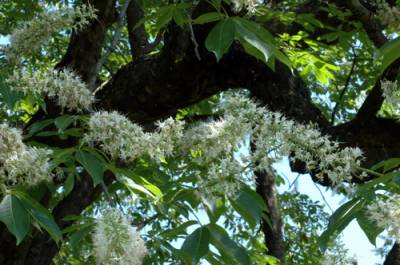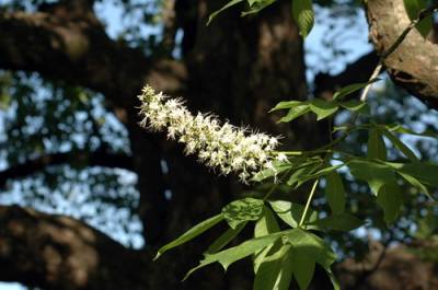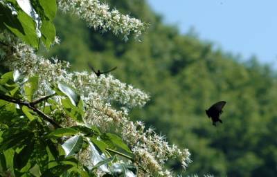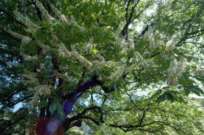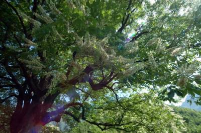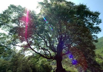 神农架林区松柏镇堂房村一棵梭罗树,它树高25米,胸径1.65米,经考证,树龄有近600岁。它仍昂首青天,枝繁叶茂,庇荫面积达40多平方米。梭罗树素有”仙树”之称,在许多神话小说中出现。传说月宫中的那棵树就是梭罗树,也有人说,凡画王母娘娘的画,身后必画梭罗树等等。梭罗树叶如掌,花如锤,果如卵,实含脐,具有非凡的生命力,是我国极为珍贵的树种,古老的神农架成为它的家园。春天让梭罗树枝繁叶茂、生机盎然。