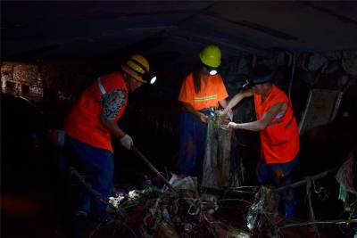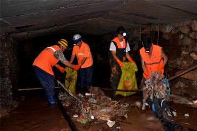 7月14日,环卫工人正在宣恩县城黄河沟至工商局地下管网清理垃圾和淤泥。前段时间持续强降雨导致河水暴涨,河道内残留的垃圾堵塞了河道,影响排水泄洪,对沿岸居民造成安全隐患,同时污染环境、滋生蚊蝇,影响附近居民的身体健康。宣恩县城管局积极部署,先后出动城管队员及环卫工人300余人次,共清理淤泥垃圾60余车近40吨,出动洒水车30余次,还居民一个清洁舒适的生活环境。