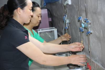 14日,鹤峰县谊友建材有限公司的车间和化验室,工人们为完成定单赶时间生产忙碌着,化验室人员正抓紧化验产品各项参数指标。