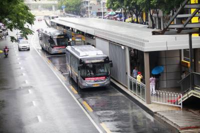 7月15日,宜昌市BRT快速公交系统全线通车试运行。据了解,宜昌BRT总投资16亿元,2014年2月25日正式动工,贯穿宜昌市西陵区、伍家岗区、夷陵区三大主城区。设计全长23.9公里。是国内目前单条线路最长、站距最短、站位最多、施工难度最大的BRT项目。投入运行后,现有线路运行的公交车总量可以减少50台以上,平均车速提高1.5倍。有望缓解当地日益增长的交通拥堵和汽车尾气排放问题,提高城市环境和市民出行质量。宜昌市BRT项目被亚行评为国内唯一的可持续交通项目最佳案例。本报视界网 黄翔摄