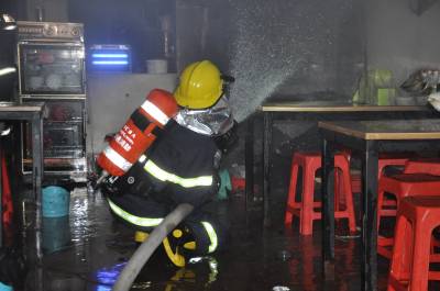 一天两家餐馆失火,再次敲响消防安全警钟。对此,警方提醒:入伏后气温升高,餐饮业主要引以为戒,及时排查煤炉、煤气罐、灶台及抽烟机等重点部位的火灾隐患,加强店内日常消防安全管理,强化员工消防器材使用、火灾事故处置、自救及逃生等技能的知识培训。(视界网 欧阳智慧 卢丽 摄)