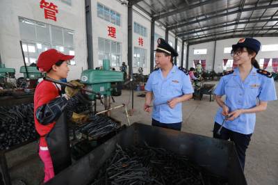7月16日,竹山县工商局宝丰工商所干部深入辖区招商引资企业湖北宏志五金制造有限公司加工车间里,了解该公司出口欧美等地的五金工具生产销售等情况,及时提供优质服务。近年来,该县工商系统坚持抓好政策宣传落实到位、培训辅导到位、跟踪服务到位、沟通协调到位,“保姆式”服务培育招商引资企业,促使县域经济可持续发展。