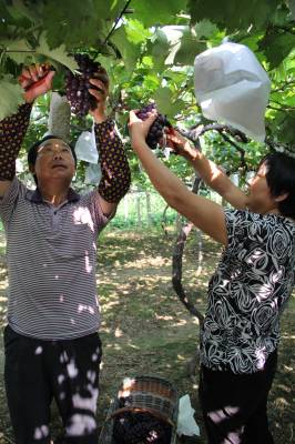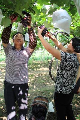 “生态”葡萄熟了日子甜 本报讯 7月12日,汉川市汈东街道办事处葡萄园内果农吴新国与老伴忙着采摘葡萄出售。今年57岁的吴新国种了27年的葡萄,他承包了8亩地。为保障葡萄品质,他坚持施用沼液等有机农家肥,不打农药。由于管理精细,他种出的葡萄颗粒饱满,口感很好,产品销往武汉、广州等地,供不应求,年纯收入10多万元。他还利用葡萄酿制葡萄酒,提升葡萄附加值,葡萄成为“摇钱树”。 视界网刘晓平摄