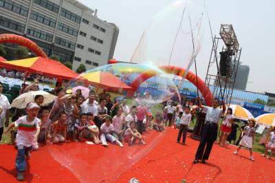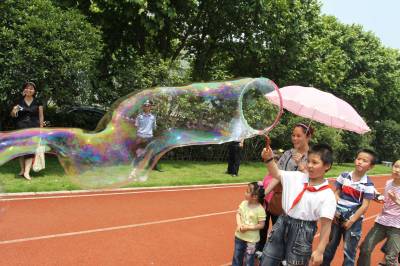 2010年5月30日,武汉,48岁的公汽司机郑维在楚天读者网友节上现场表演吹多个种类的大泡泡,引起观众的极大兴趣。郑维表演结束后还耐心地教小孩们吹泡泡的方法,并让他们玩了近一个小时,给众网友及其小孩带来莫大的童真快乐。据了解,郑维小时候喜欢吹泡泡,当兵退伍后做了公交车司机,业余时间仍潜心吹泡泡。郑维在报纸上看到英国男子萨姆吹出一个能包住汽车的大泡泡。郑维认为中国人也应该能吹出大的泡泡,便潜心研究吹大泡泡。他试着将甘油、洗洁精、水等用不同比例的混合在一起,经过多次实验,找到了吹大泡泡的诀窍。于今他能吹出百龙出海、猴子捞月、毛毛虫等各种形状的泡泡,甚至能用两支钓鱼竿,能将泡泡”钓”出来。郑维将自己吹出的泡泡分三类:超级泡泡、魔术泡泡、艺术泡泡。遇到节日,他自己到公园、江滩去表演,现今已有些单位搞活动时请他去表演。