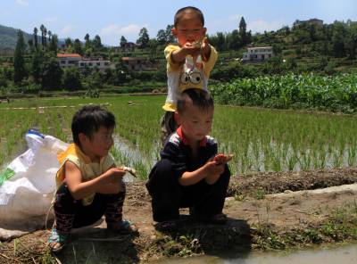 建始县长梁乡白云村十组邱龙凡等小朋友将青蛙放归自然。过去,每到夏天很多人利用晚上都到田里去抓青蛙到集市去卖,现在村民们环保意识增强了。在大人们的引导下小朋友们将青蛙放归自然。