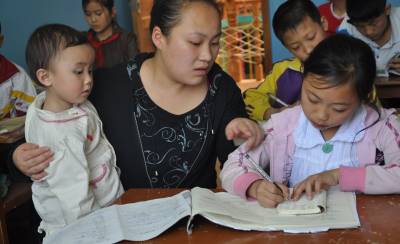 近年来,越来越多的农村夫妇离开故土,加入到”打工族”的行列,他们将孩子留给家中的老人或亲戚代养,于是出现了这样一个特殊的未成年群体——”留守儿童”。六一国际儿童节到来之际,笔者探营利川市馨艺留守儿童托管中心。5月30日早上,刘艳像往常一样来到孩子们的寝室,催孩子们起床。两岁大的王铮正坐在床上等着刘艳帮她穿衣服,3天前,小王铮才来到托管中心,刘艳是托管中心200余名孩子的”妈妈”。4年前,年仅23岁的刘艳从湖北民族学院毕业后,应聘到一民办学校,在暑假期间办培训班的时间里,刘艳对孩子们产生了感情。2007年春节,刘艳经过东拼西凑,借来10万元现金,正式创办了利川市馨艺留守儿童托管中心。托管中心创办之初,仅有4个学生。慢慢地,刘艳的真心付出感动了学生、家长和社会。随着时间的推移,生源渐渐好起来,家长们都放心地把孩子交到刘艳手里。几年来,先后有400名留守儿童在这里托管过。托管中心年龄最小的就是两岁的小王铮,最大14岁。”妈妈”刘艳除了要完成日常教学任务,还要给年龄小的孩子穿衣打扮、洗澡洗衣服……该中心如今招收的200余名孩子里,三分之二是留守儿童,他们大多来自乡镇。7岁的张苗刚来到托管中心时,很孤僻,喜欢独自坐在一边发呆,张苗父母都在外地打工,只有逢年过节才回家看看张苗。思念是每个孩子的必修课,因为常年见不到父母,孩子们难免孤独,刘艳为此经常和孩子们谈心,每周也带领孩子们到外面去游玩、做游戏。为了给留守儿童与打工父母建立一座沟通与交流的桥梁,托管中心先后开通了”亲情电话”和”亲情视频”,并建立了”爱心档案”。由于与父母长期两地相隔,缺少亲人的关怀,”留守儿童”的生活质量相对较低,家务负担较重,学习成绩较差,性格孤僻、自卑者较多,刘艳最担心的就是孩子们的心理健康问题。同样的蓝天,同样的阳光;同样的童年,同样的精彩。刘艳希望全社会都来关心和呵护留守儿童,为留守儿童营造一个温暖美好的学习生活环境,让这些孤独的花朵美丽绽放。