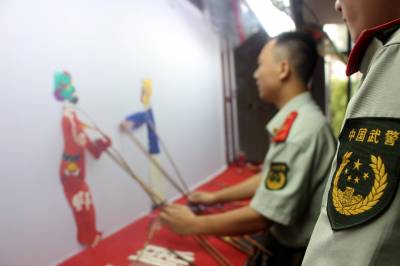 皮影进警营 湖北消防总队政委云梦看皮影